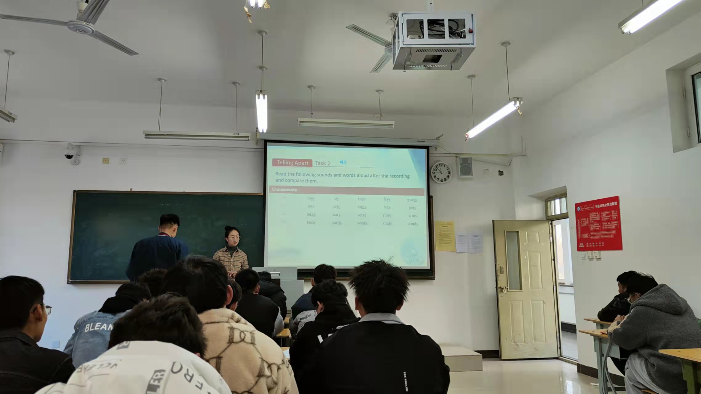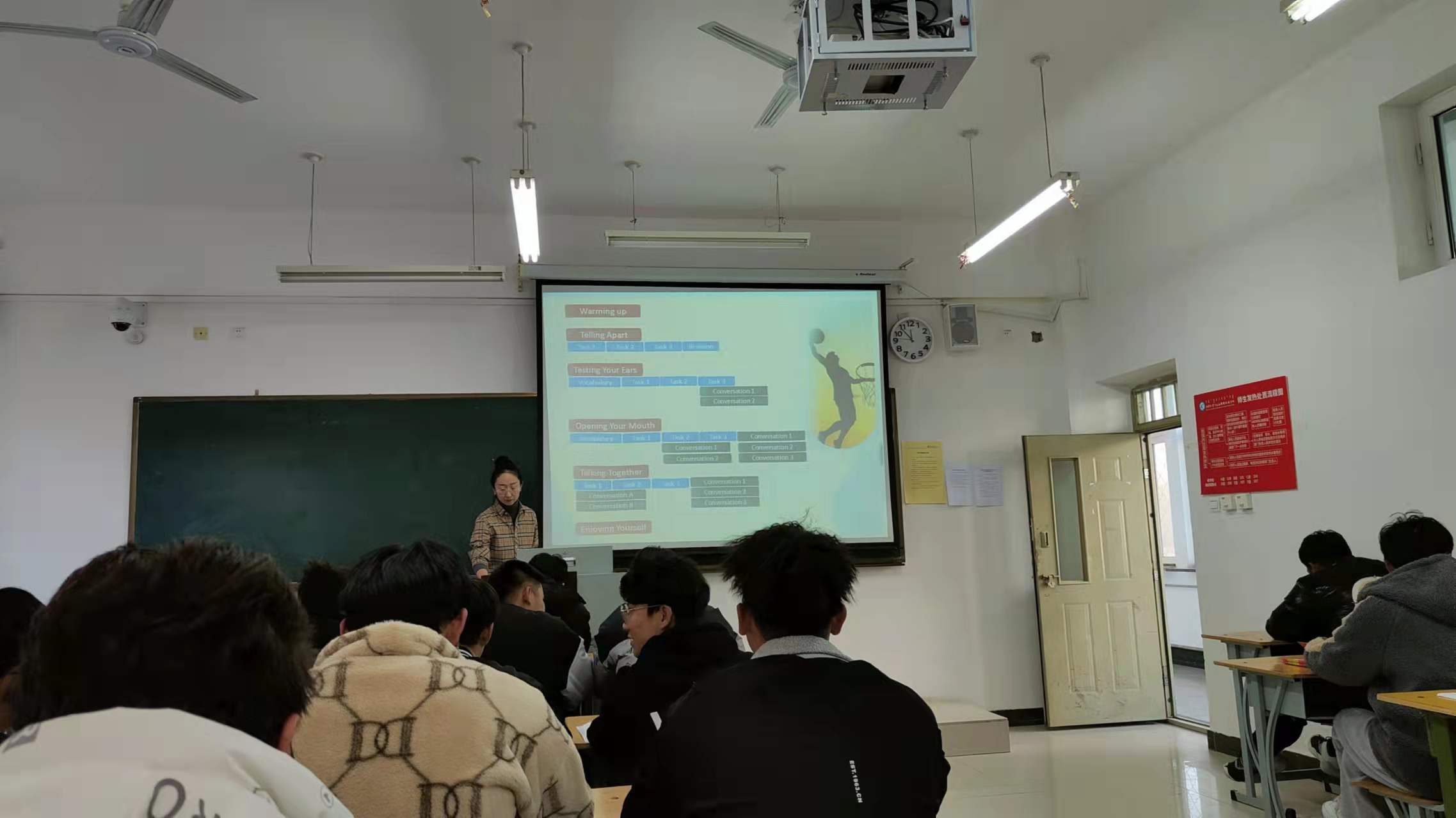 2021年11月16日周二下午,我校通识教育教学部外语教研室利用业务学习活动时间组织了一次观摩课活动。主讲人为李莉老师,地点在D102。通识教育教学部主任孟庆新、副主任胡啸冲,以及全体外语教师都参加了观摩课的听课、评课。
