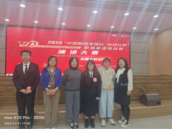 11月11日,2023“中国教育电视台·外研社杯”职场英语挑战赛演讲大赛内蒙古自治区赛在乌兰察布医学高等专科学校线下举办。全区来自11所参赛院校的33名参赛选手经过激烈角逐,我校通识教育教学部苏娅老师指导的周雨萱同学获得二等奖;刘晓红老师指导的吴昕熹同学和成丽萍老师指导的吴润健同学分别获得了三等奖。