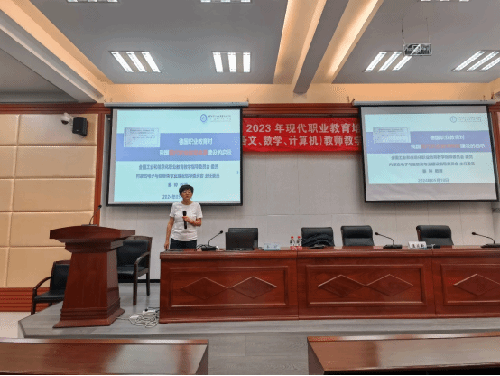 5月18日,由我校通识教育教学部承办的内蒙古自治区2023年职业院校教师素质提高计划(中职)公共基础课(语文、数学、计算机)教师教学能力提升培训班,邀请我校党委委员、副校长秦婷教授做新时代职业教育理论专题讲座。秦婷教授是计算机应用技术专业硕士毕业,是自治区教学名师,担任全国工业和信息化职业教育教学指导委员会委员,内蒙古电子与信息类专业建设指导委员会主任委员。讲座由通识教育教学部主任孟庆新主持讲座。