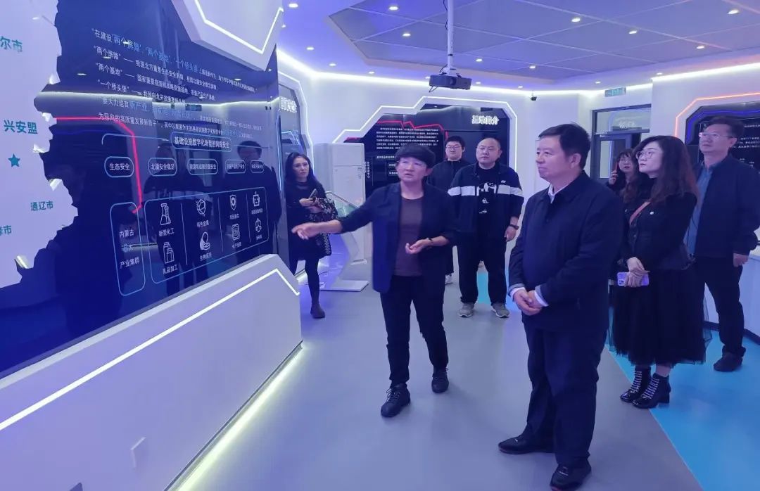 杨文革一行参观了学校、无人机产业学院、大数据人工智能实训基地、网络安全空间实训基地、无线电博物馆。