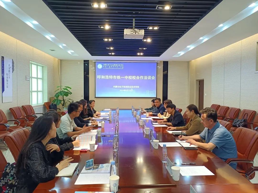 9月20日,呼和浩特市铁路一中集团校校长杨文革一行八人到我校召开校校合作洽谈会,学校党委委员、副校长秦婷及相关处室负责人参加了会议。