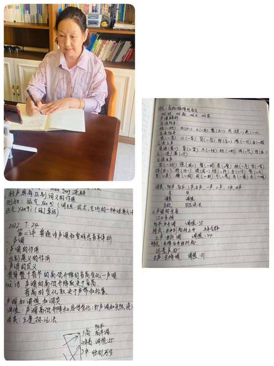 马燕妮老师讲解的内容分五个部分:声调的作用、声调的定义、调值和调类、声调的发音、声调的辨析,重点从声调的发音和声调的辨析两个方面讲解了普通话声调的重点、难点音发音辨析。各盟市参训学员集中观看了线上直播。