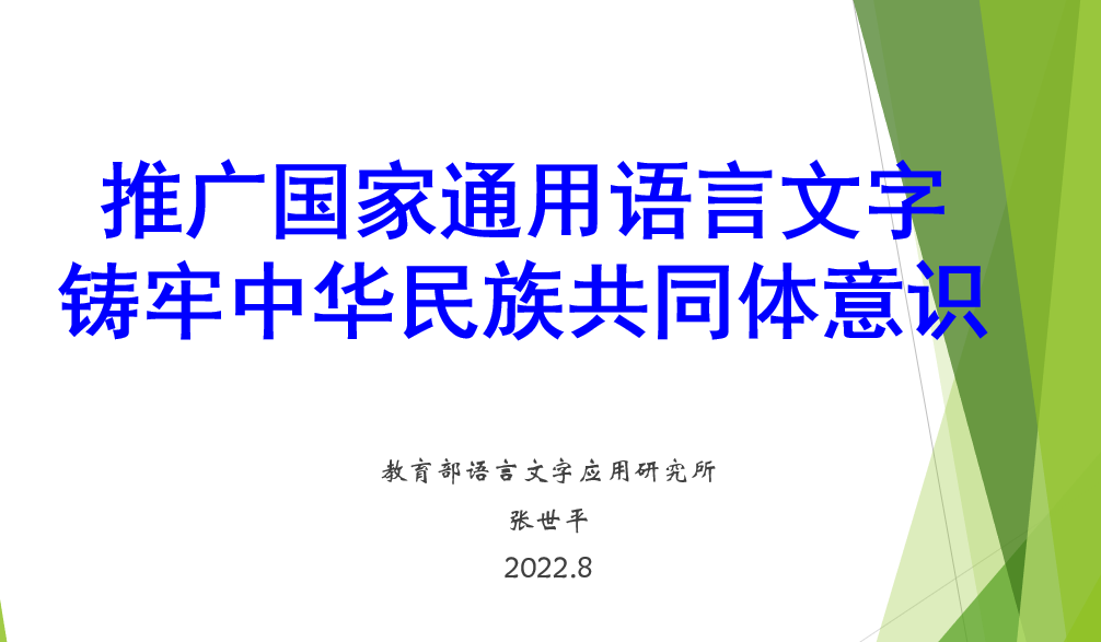 8月7日上午,2022年全区中小学(幼儿园)教师国家通用语言文字应用能力提升培训进行第六场专题讲座。培训班邀请教育部语言文字应用管理司原副司长、教育部语言文字应用研究所原所长张世平为参训学员做题为《推广国家通用语言文字铸牢中华民族共同体意识》的专题讲座。