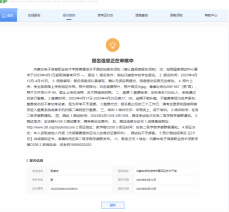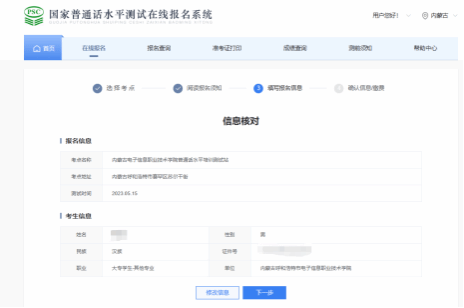流程如下:登陆注册个人信息——报名入口处选择:内蒙古——点击“我要报名”——选择“内蒙古电子信息职业技术学院普通话水平测试站”——选择“测试时间”——认真阅读测试公告——进行信息核对——报名信息正在审核中
