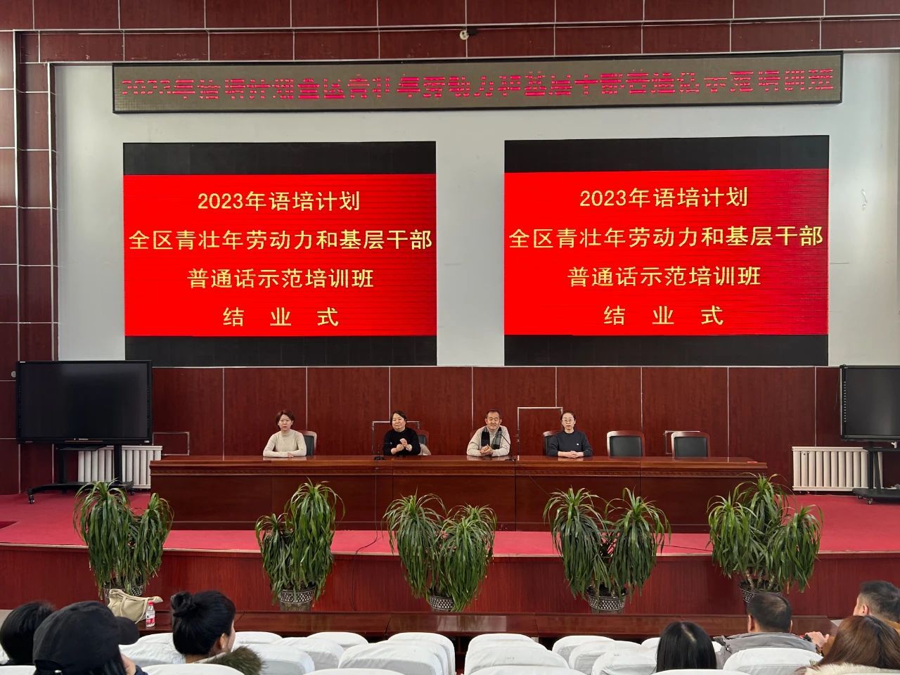 11月24日,2023年“语培计划”全区青壮年劳动力和基层干部普通话示范培训乌兰察布市商都高级中学举行进行结班式。内蒙古电子信息职业技术学院通识教育教学部主任孟庆新、纪检处处长李笑、通识教育教学部办公室主任迟惠文及参训学员参加结班式。结班式由商都县教育体育局师资股副股长刘宏斌主持。