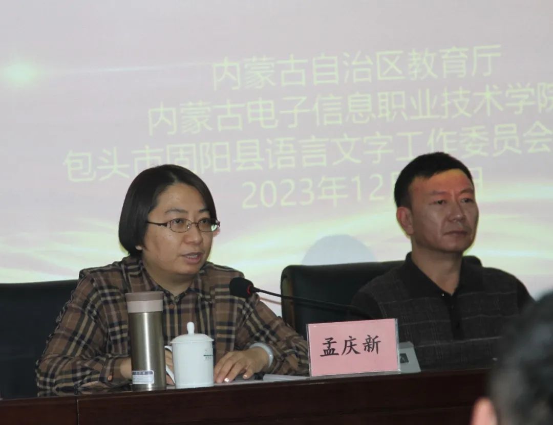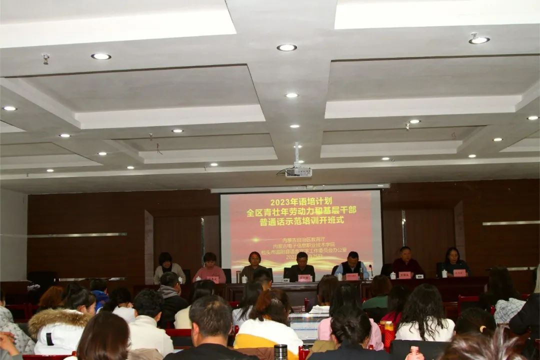 12月25日,由我校通识教育教学部承办的2023年“语培计划”全区青壮年劳动力和基层干部普通话示范培训在包头市固阳县培训酒店举行开班式。内蒙古自治区教育厅语言文字应用管理处三级调研员李少锋、固阳县副县长苏和巴特尔、固阳县教育局副局长张楼成、固阳县教育局师资股信鸿波、内蒙古电子信息职业技术学院通识教育教学部主任孟庆新、通识教育教学部办公室主任迟惠文、通识教育教学部教师吴艳平参加开班式。开班式由固阳县教育局副局长张楼成主持。