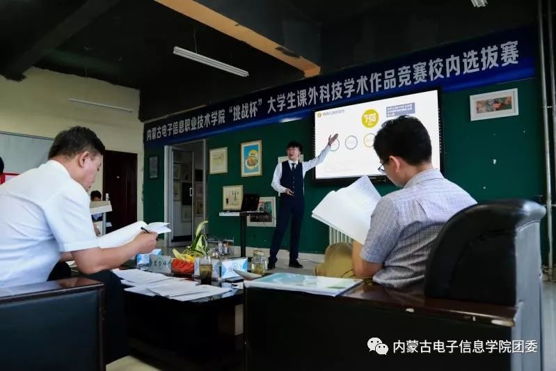 为引导和激励我校学生实事求是、刻苦钻研、勇于创新、多出成果、提高素质 并在此基础上促进我校学生课外学术科技活动的蓬勃开展,6月4日下午,由校团委主办的内蒙古电子信息职业技术学院“挑战杯”课外学术科技作品校赛于学校实训楼D座创客咖啡厅举办,由科技处处长吉雪峰老师、国家统计局内蒙古调查总队青工委主任李鹏老师、创新创业与继续教育学院院长庞天天老师、教务处副处长张兴飞老师、学生工作处副处长、团委书记刘泽利老师出席本次大赛评审委员会委员。此次大赛由本院校电子商务学院、软件与大数据学院、电子与自动化学院、数媒与艺术学院、计算机与网络安全学院共同参赛。经过评审委员会初审,入围竞赛作品共计48项,自然科学类学术论文5项、哲学社会科学类社会调查报告和学术论文26项、科技发明制17项。