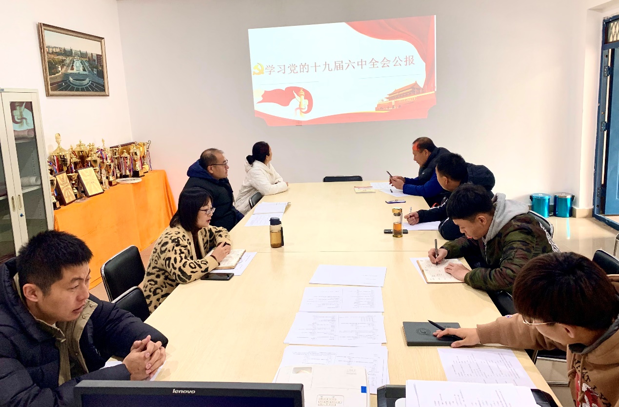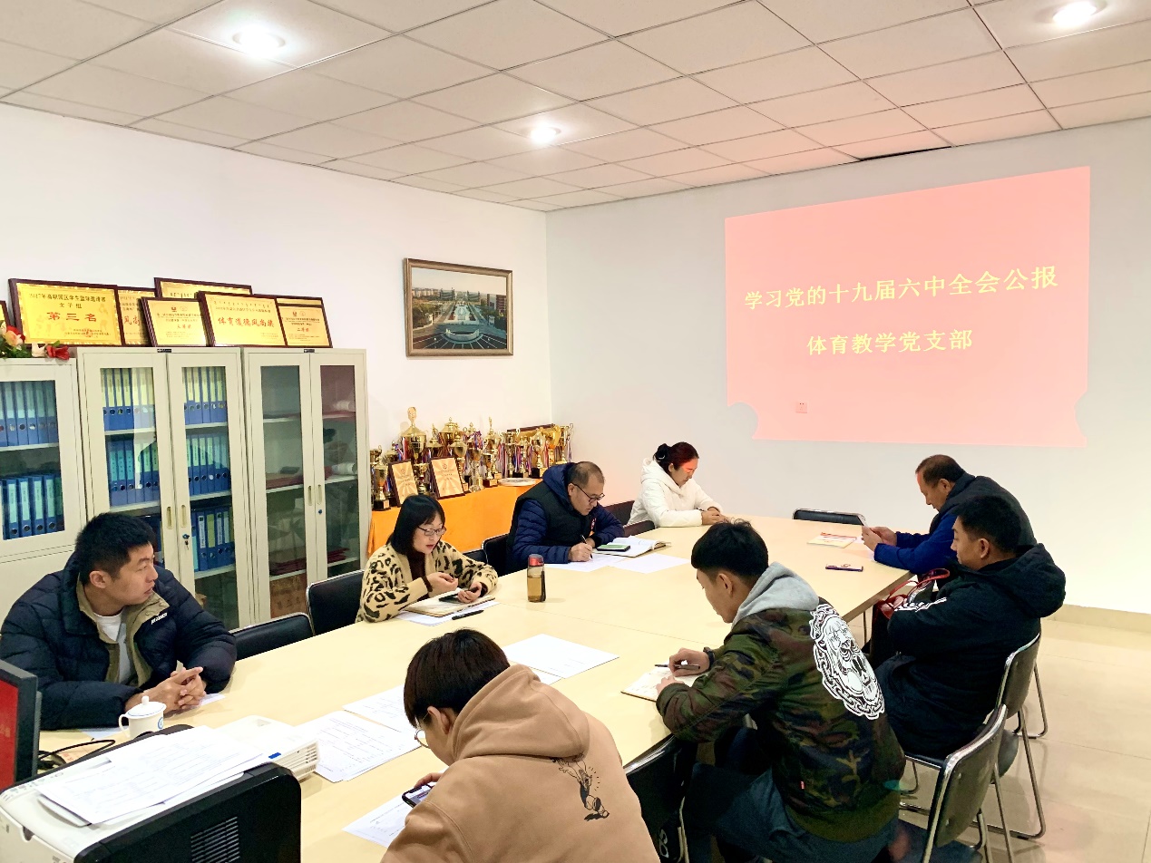 11月23日上午,体育教学党支部全体党员在文体中心一楼会议室召开十九届六中全会精神专题学习会议,传达学习党的十九届六中全会精神。会议由党支部副书记兰博主持。