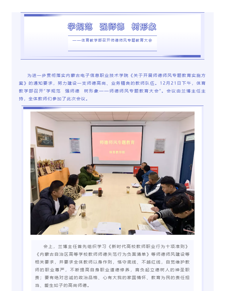 学规范 强师德 树形象——体育教学部召开师德师风专题教育大会
