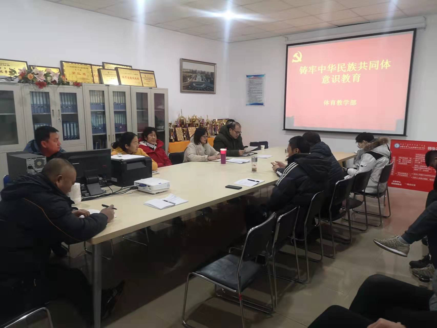 11月18日下午,体育教学部召开铸牢中华民族共同体意识教育学习,全体教师参加会议。会议由体育教学部主任兰博主持。