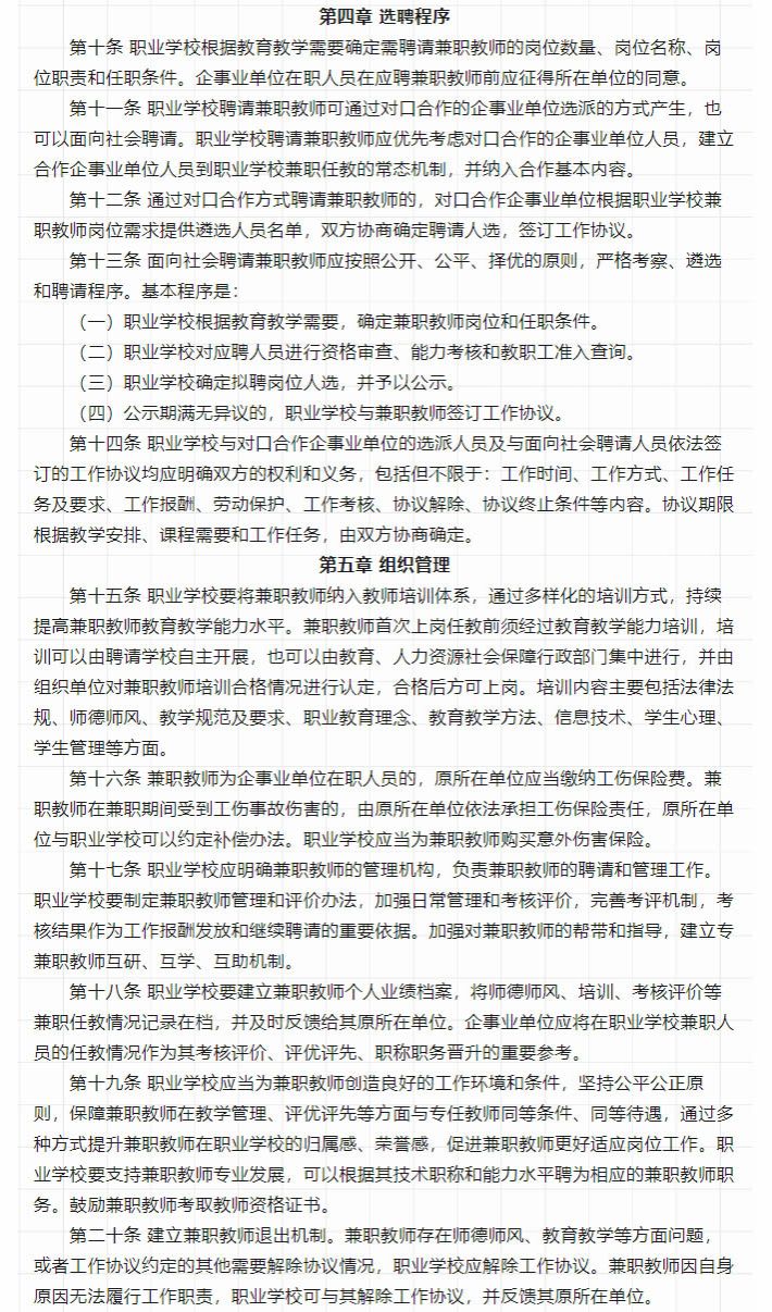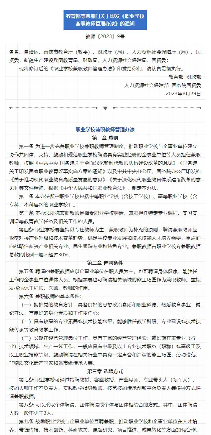 教育部等四部门关于印发《职业学校兼职教师管理办法》的通知