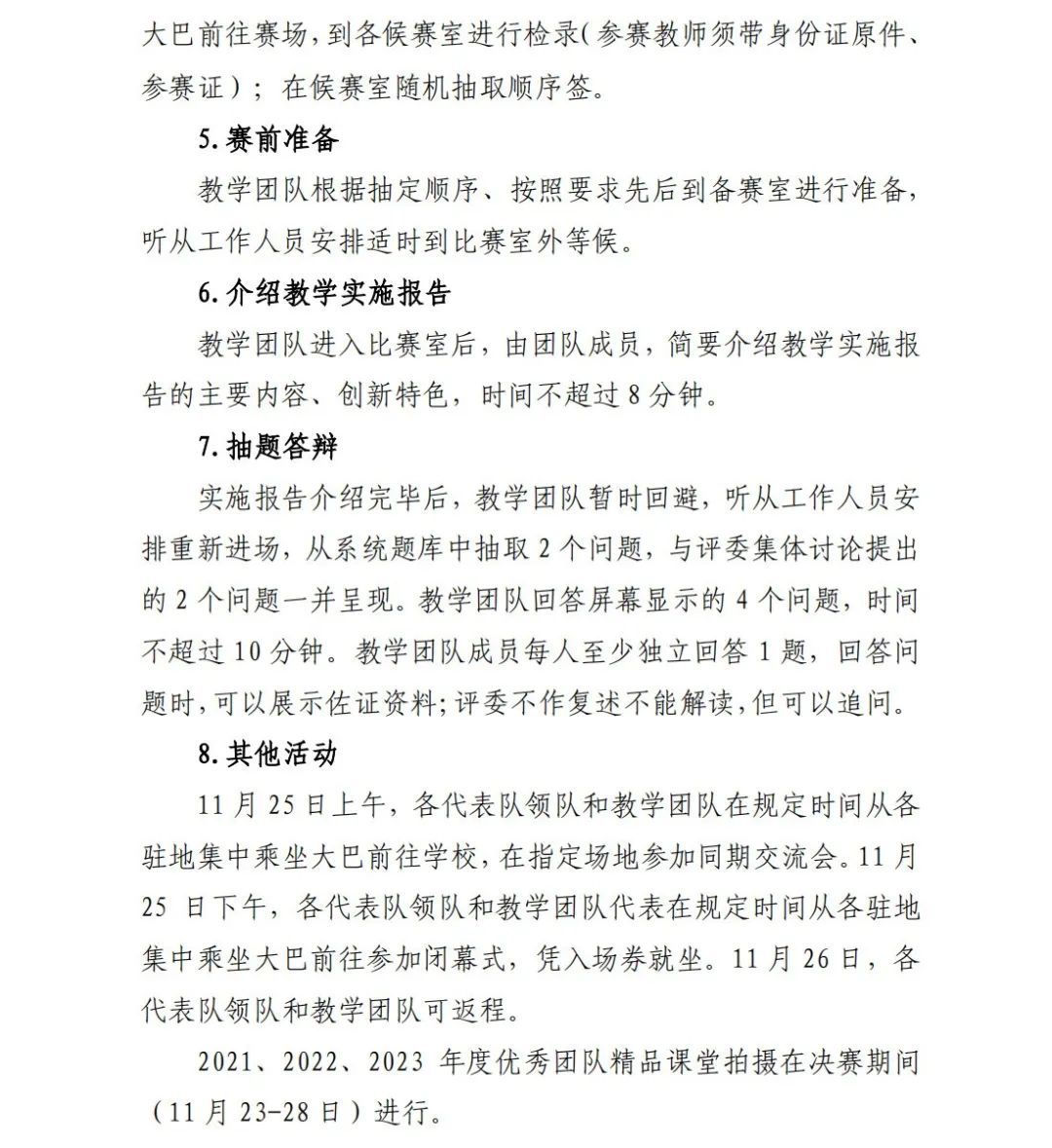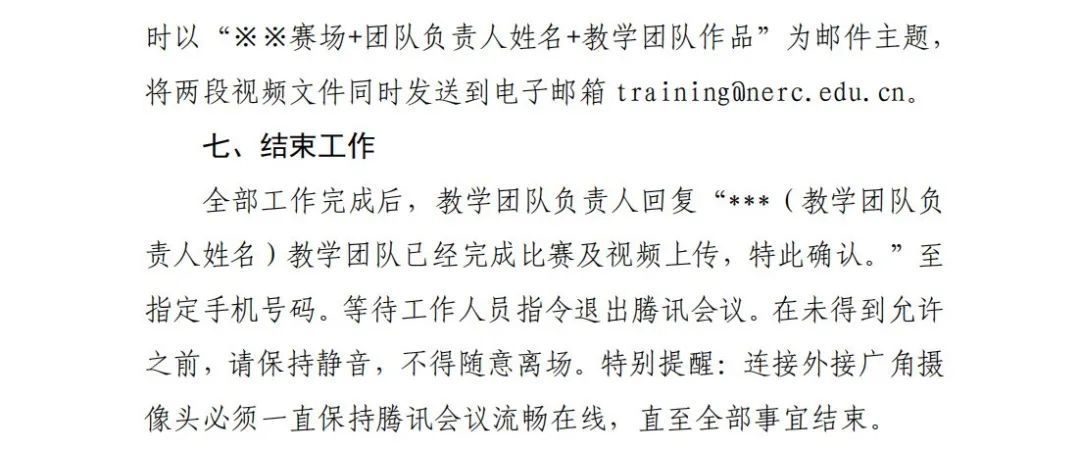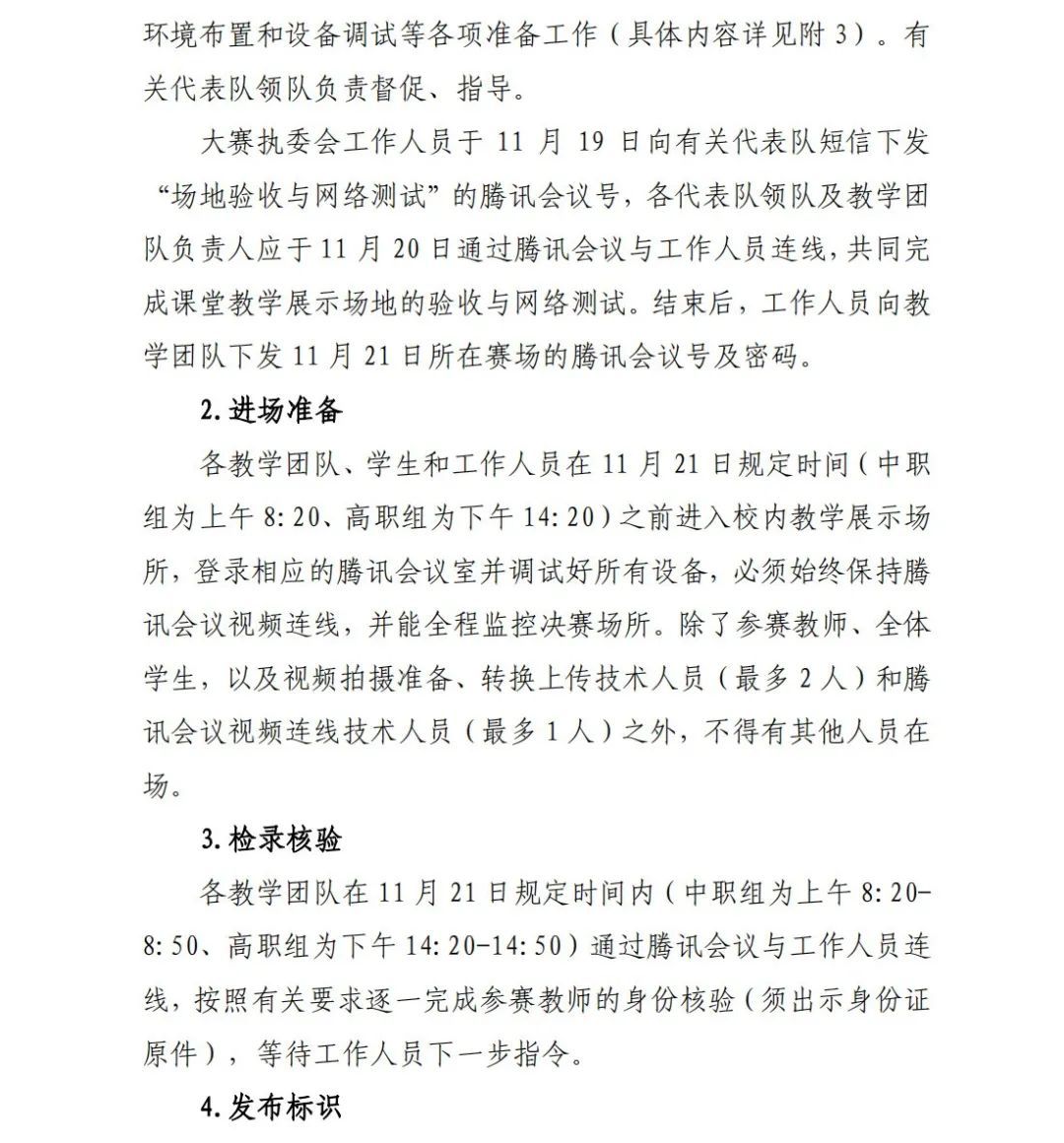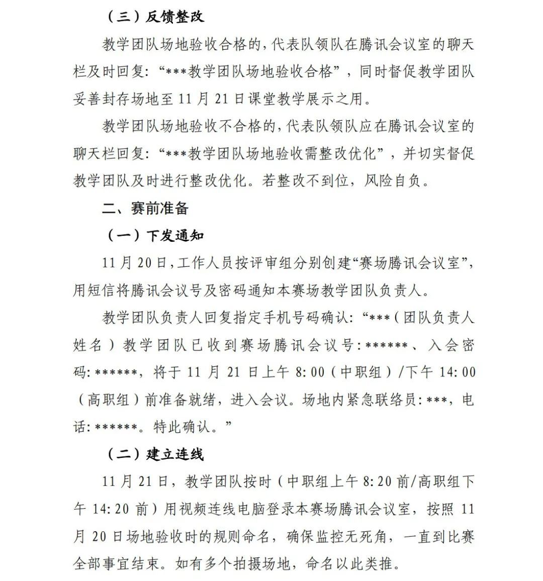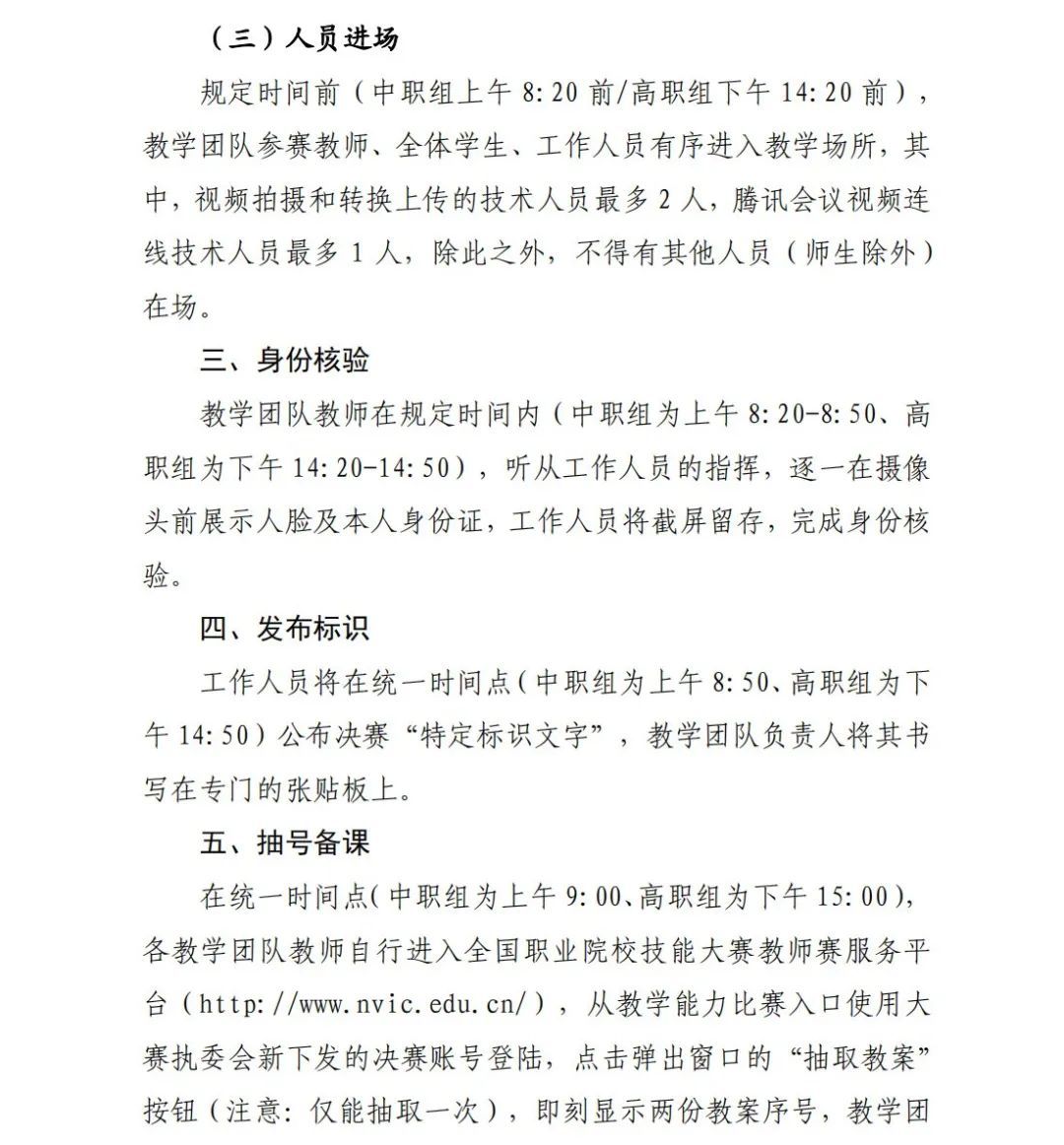 1.各参赛教学团队要根据《2023年全国职业院校技能大赛教学能力比赛决赛方案》(见附件)执行相关规定及要求。2.各代表队领队、参赛团队等相关人员差旅自付,食宿统一安排,费用自理。