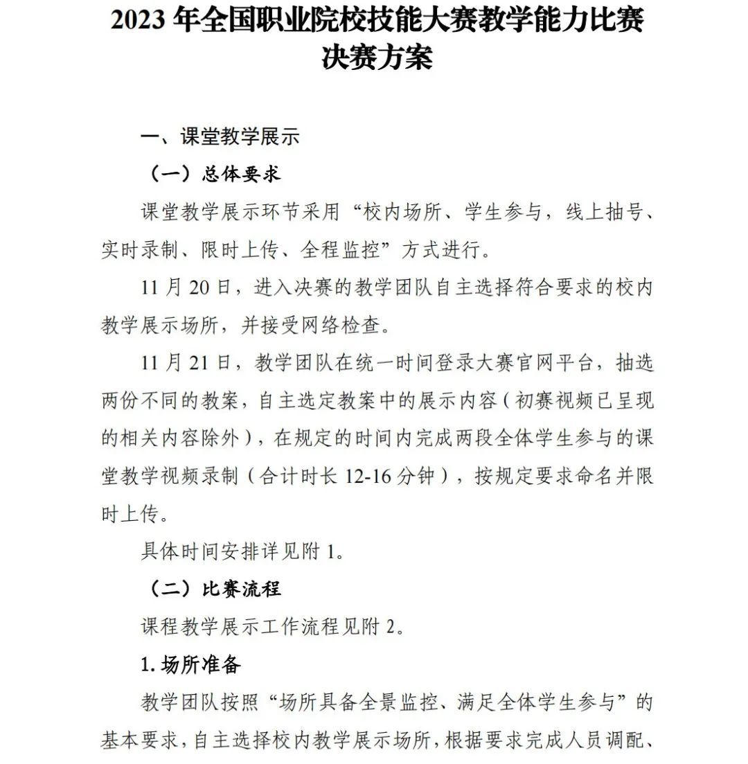 附件:2023年全国职业院校技能大赛教学能力比赛决赛方案