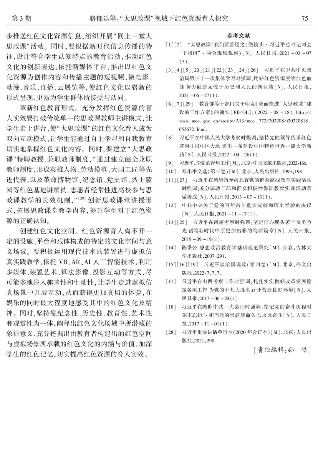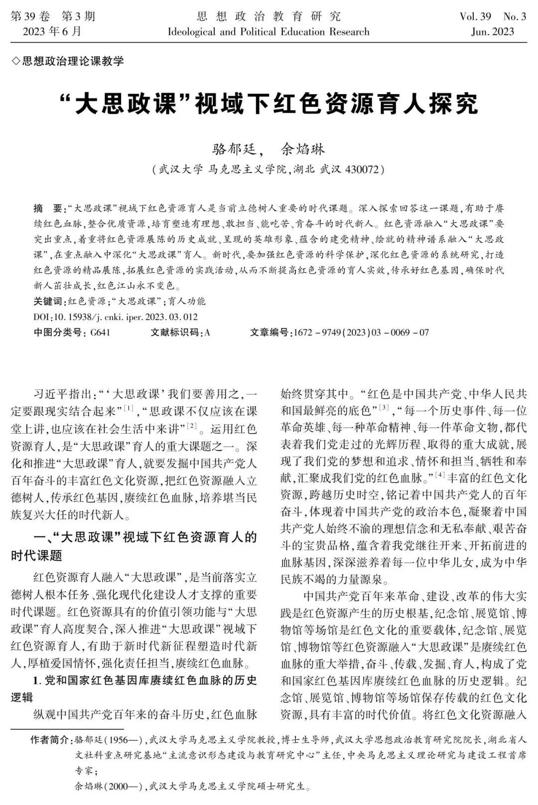 骆郁廷 等:“大思政课”视域下红色资源育人探究