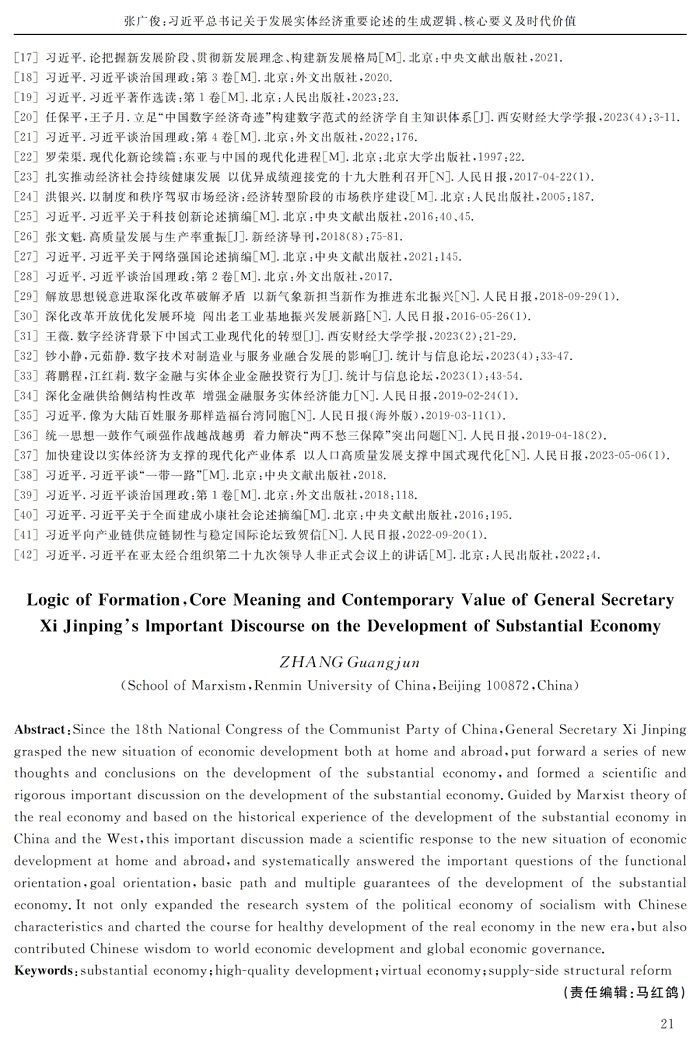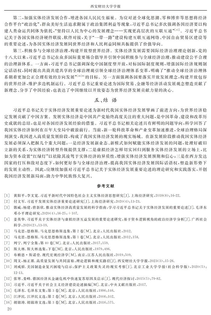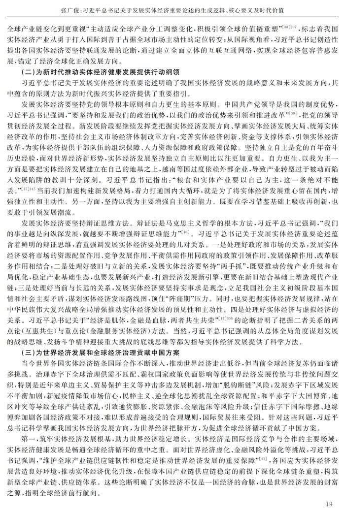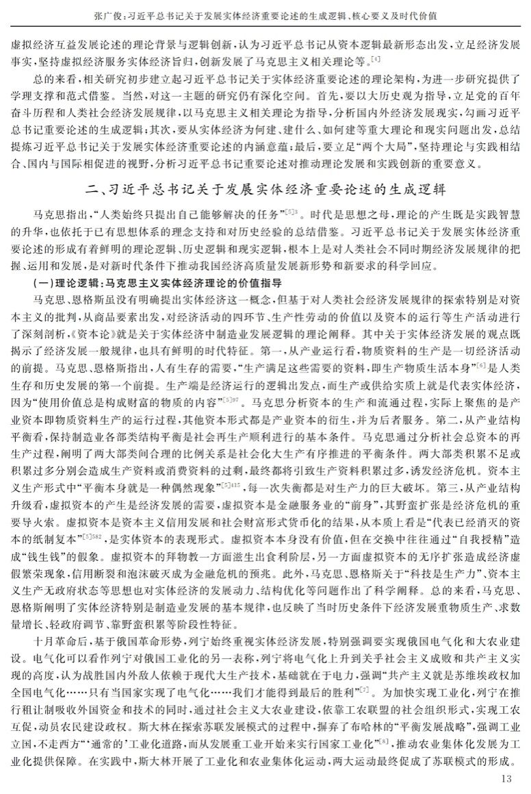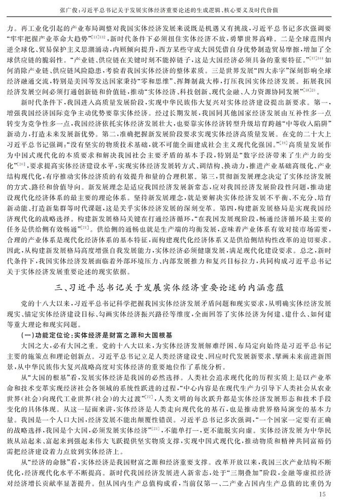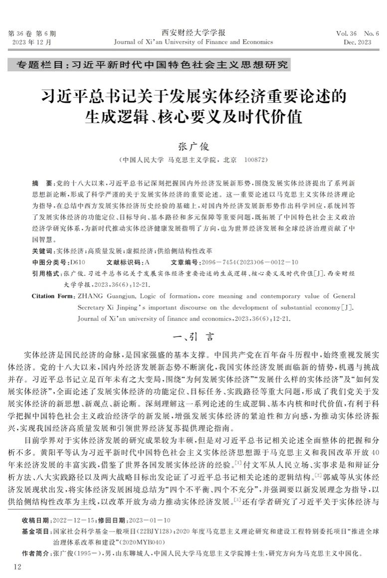 张广俊.习近平总书记关于发展实体经济重要论述的生成逻辑、核心要义及时代价值[J].西安财经大学学报,2023,36(6):12-21.