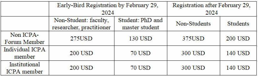 Please submit your abstracts through the ICPA-Forum conference website (https://www.comparativepolicy.org/2024-jcpa-conference/#abstract).