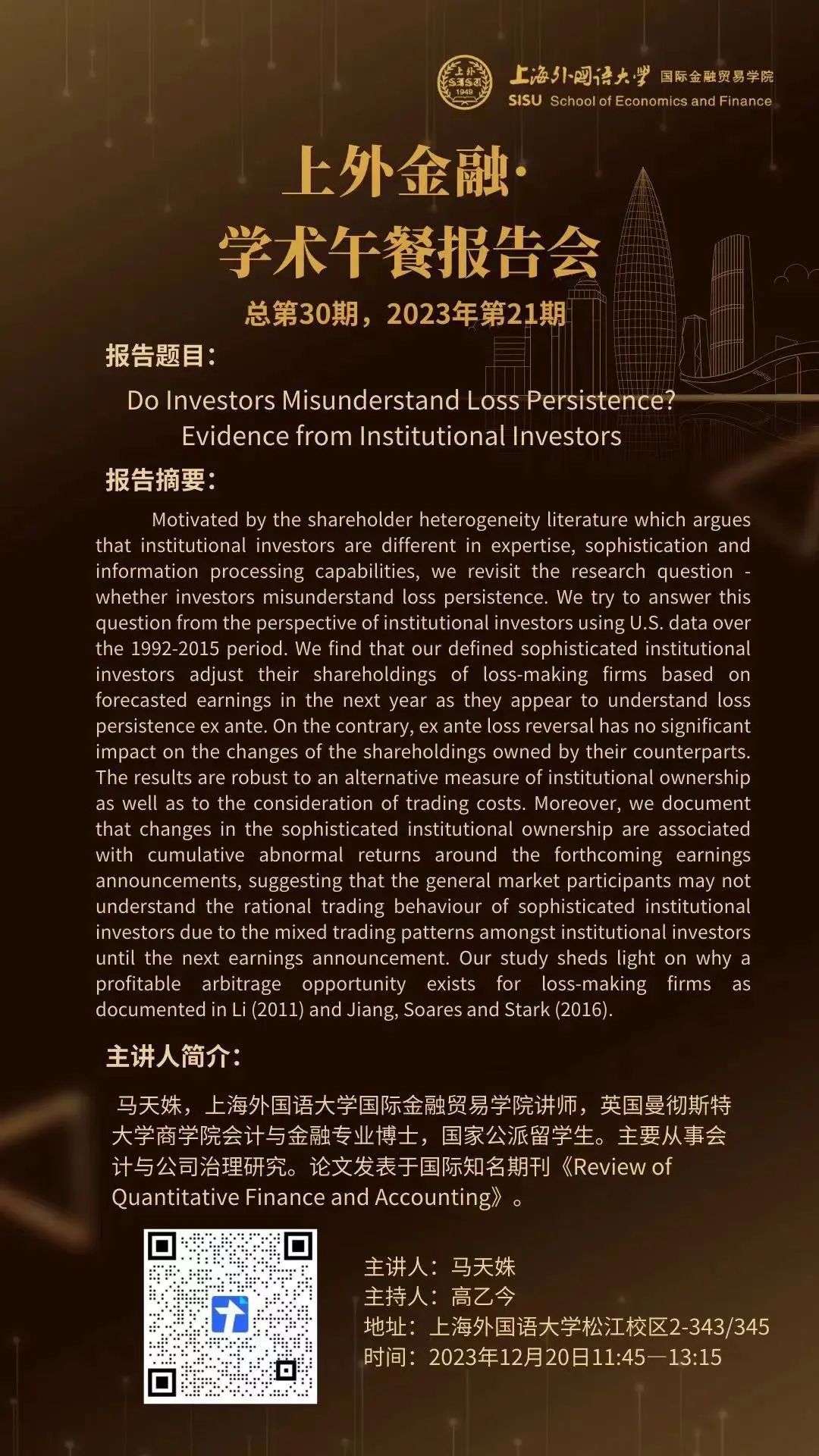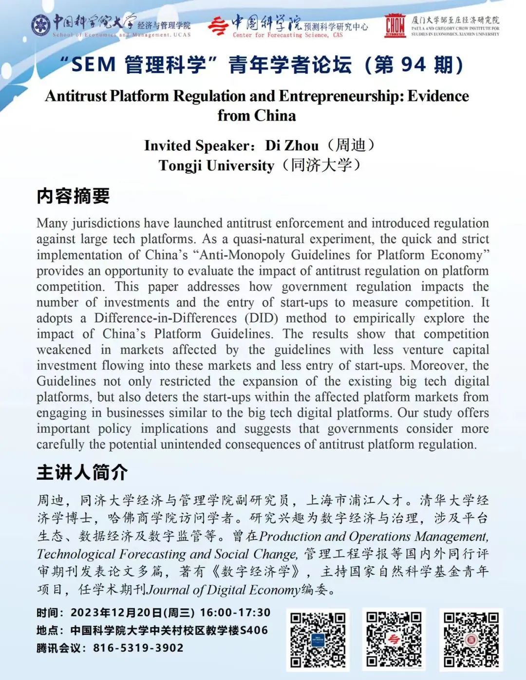 今日课表 | 12月20日 33场公开讲座汇总