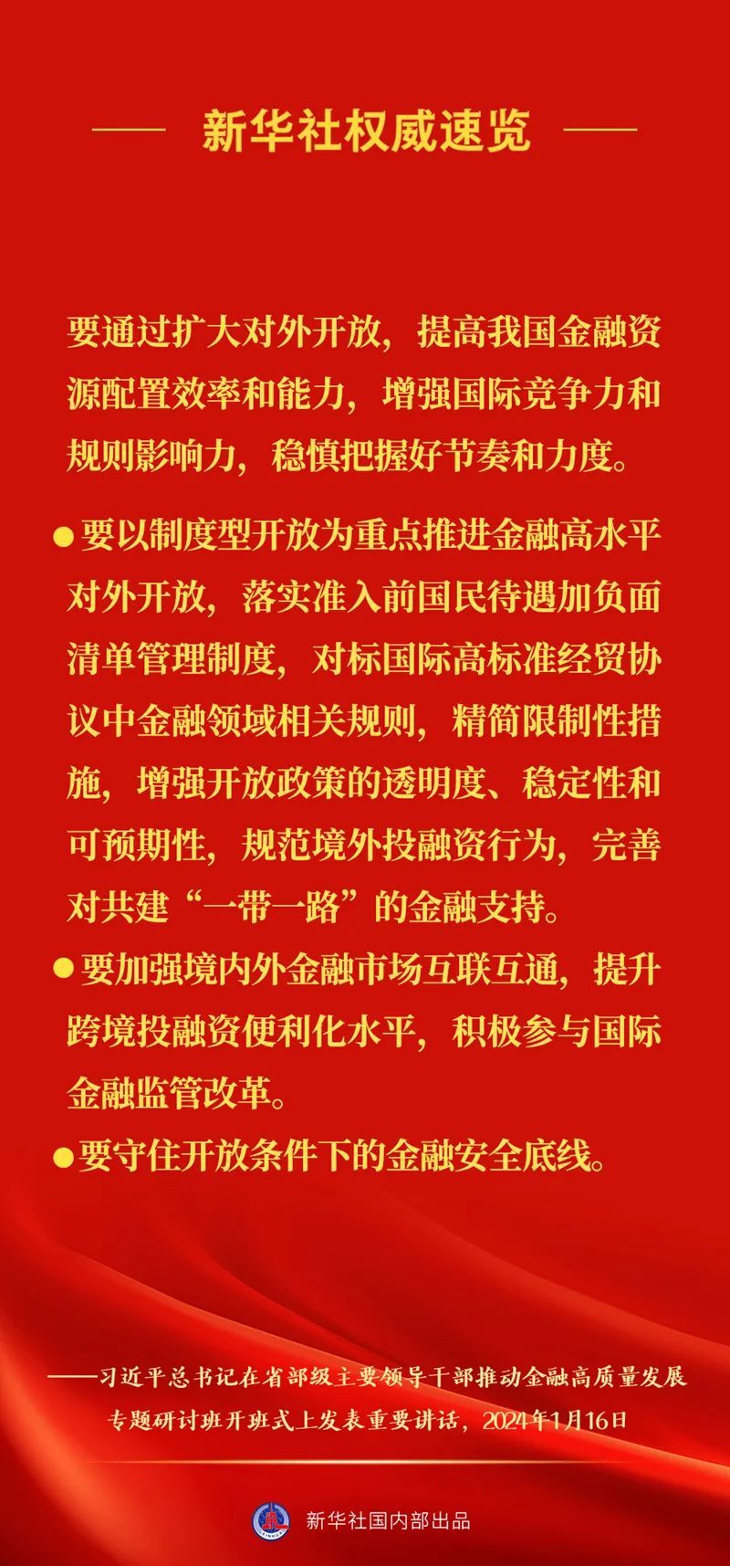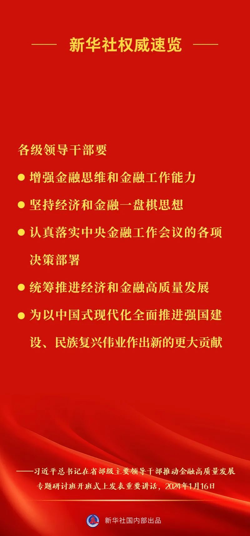 习近平总书记16日上午在省部级主要领导干部推动金融高质量发展专题研讨班开班式上发表重要讲话,一起来看讲话要点。