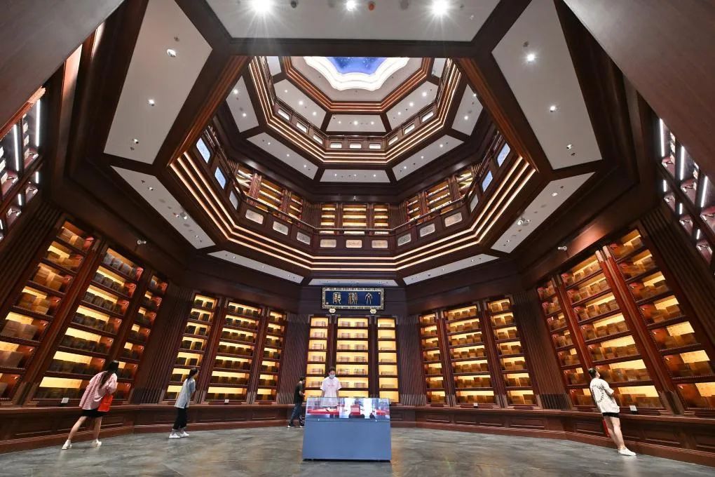 2022年7月30日,观众在中国国家版本馆中央总馆文瀚厅内参观。当日,中国国家