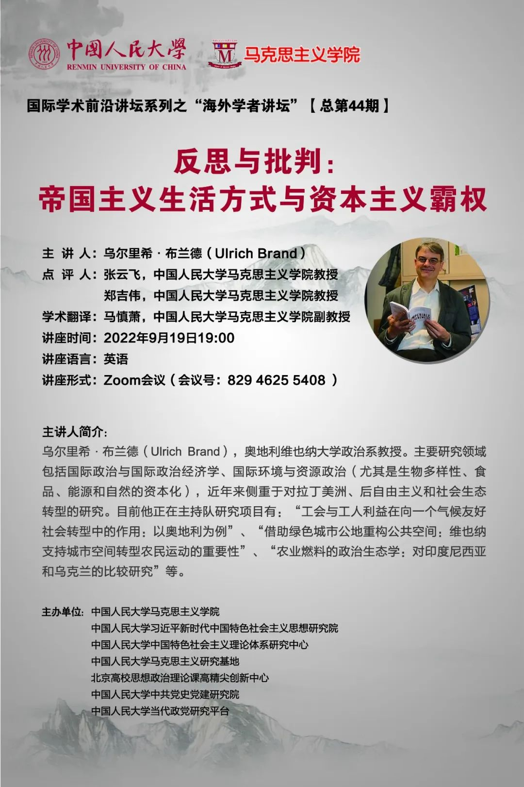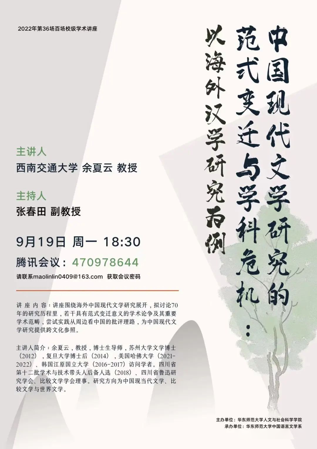 9月19日讲座 | 人大马院海外学者讲坛+交大新传院新新论坛+中国现代文学研究