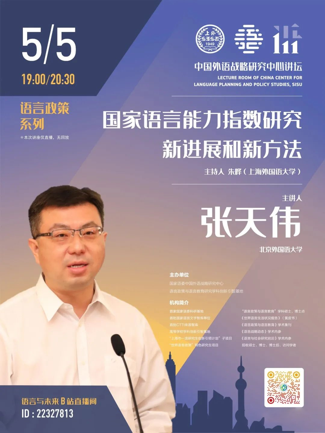 【主讲】潘鸣威(上海市曙光学者,上海外国语大学教授、博士生导师,上海市英语教育教学研究基地专职研究员。研究领域主要包括语言测试,大规模考试开发等。兼任亚洲语言测试学会中国区代表)