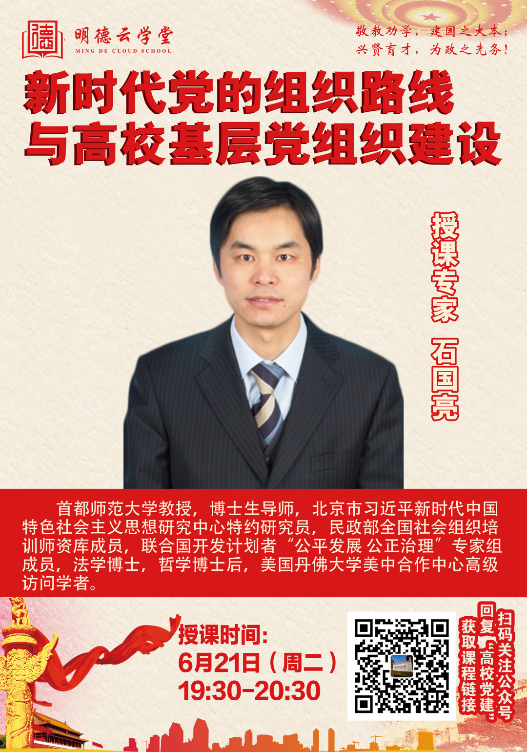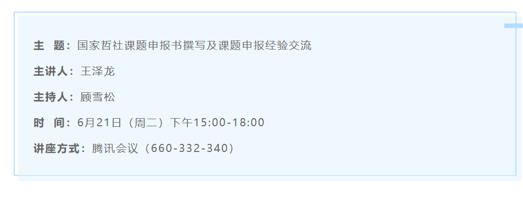 6月21日讲座清单(33个)| 讲深讲透讲活思政课+百年党史高端论坛+国家哲社课题申报+高校党建+新闻传播学研究