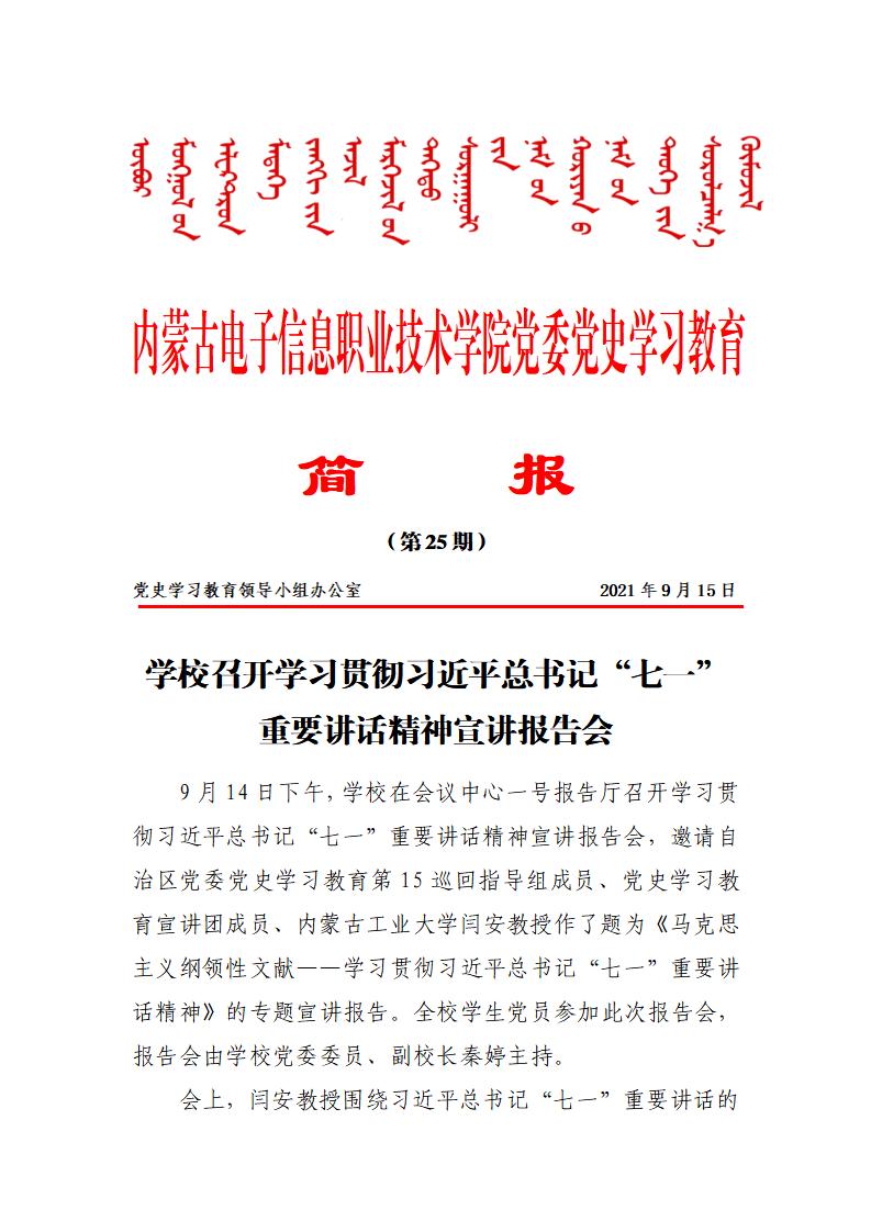 党史学习教育简报(第二十五期)