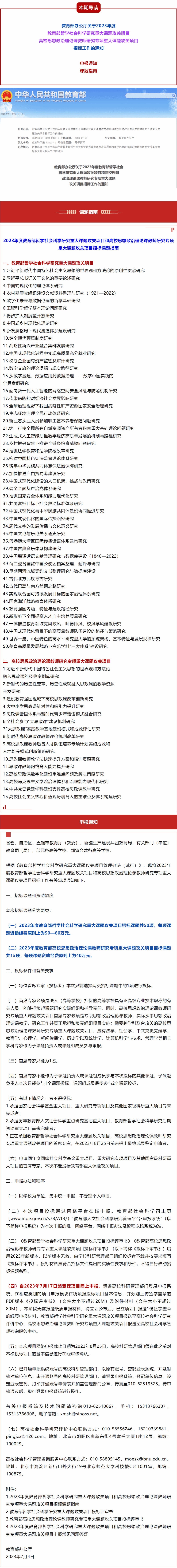 2023教育部社科研究和高校思政课专项重大课题攻关项目