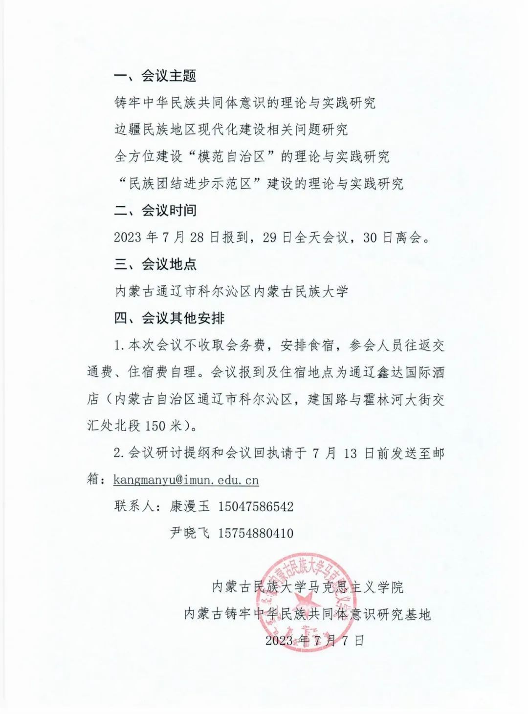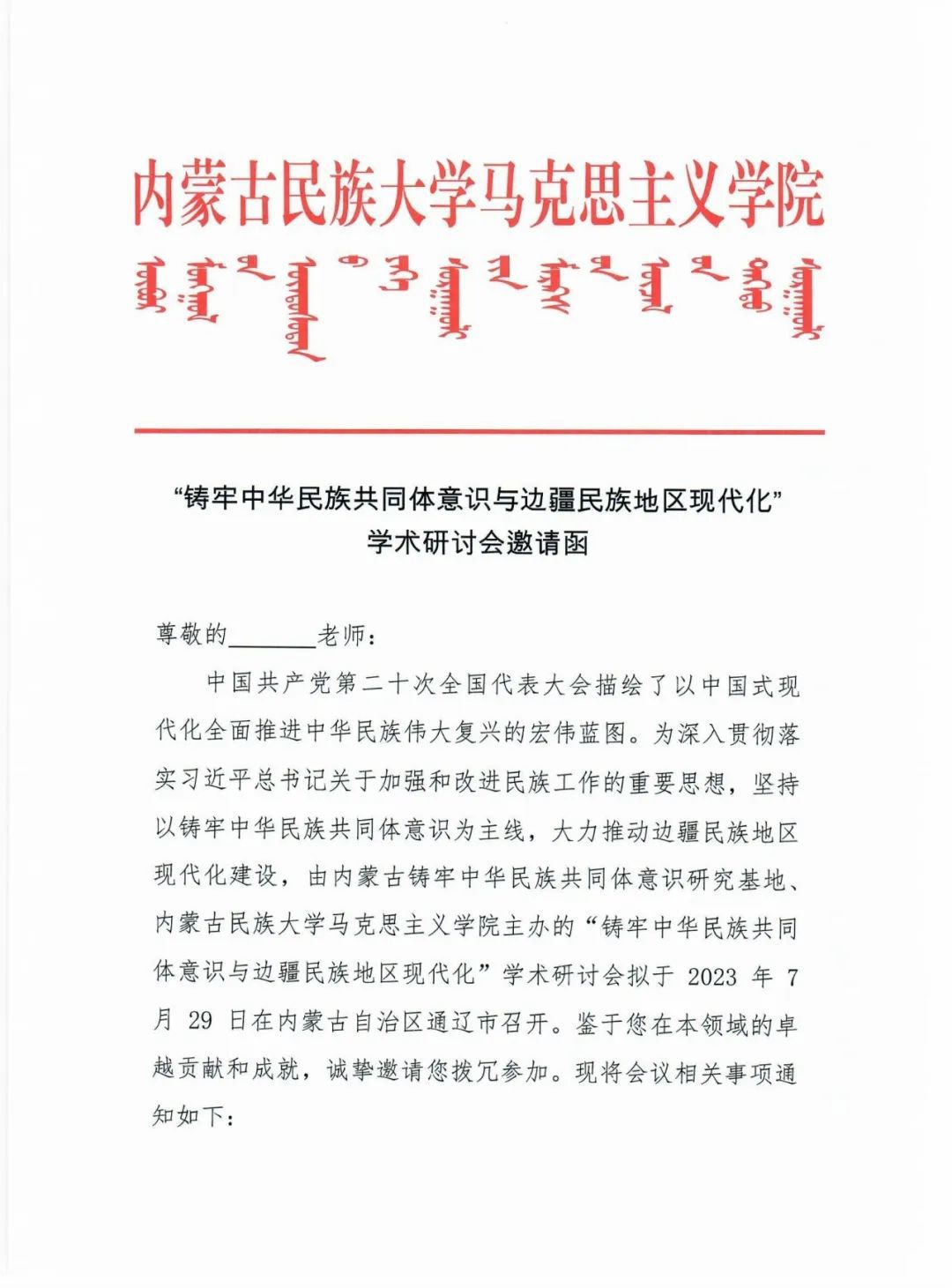 会议通知 | ”铸牢中华民族共同体意识与边疆民族地区现代化“学术研讨会邀请函
