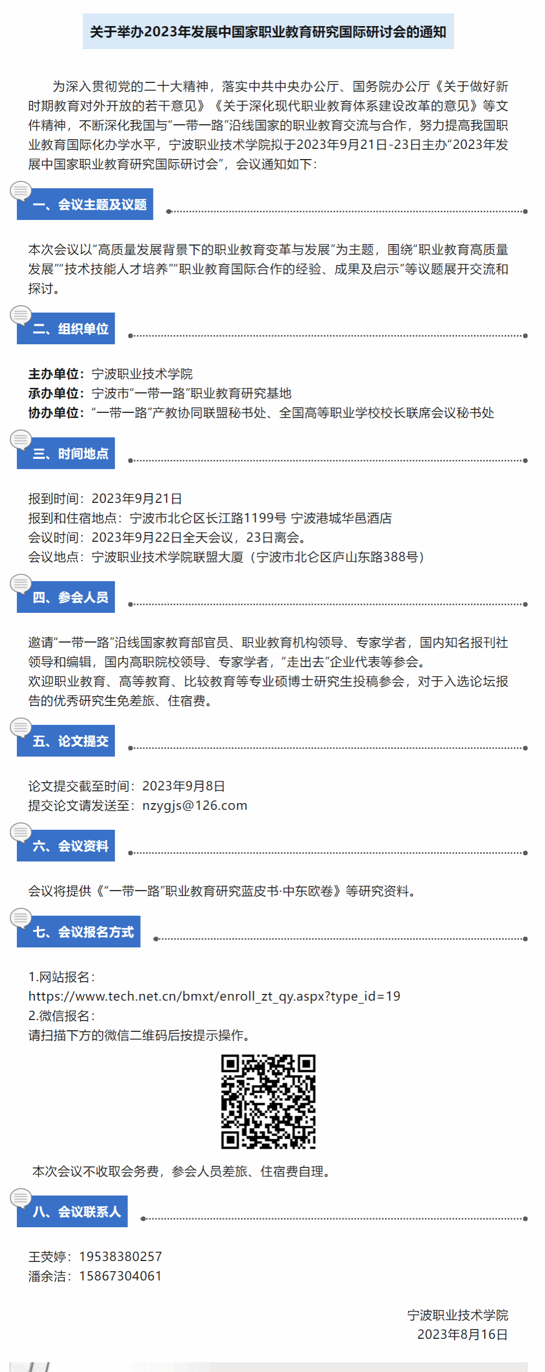 关于举办2023年发展中国家职业教育研究国际研讨会的通知