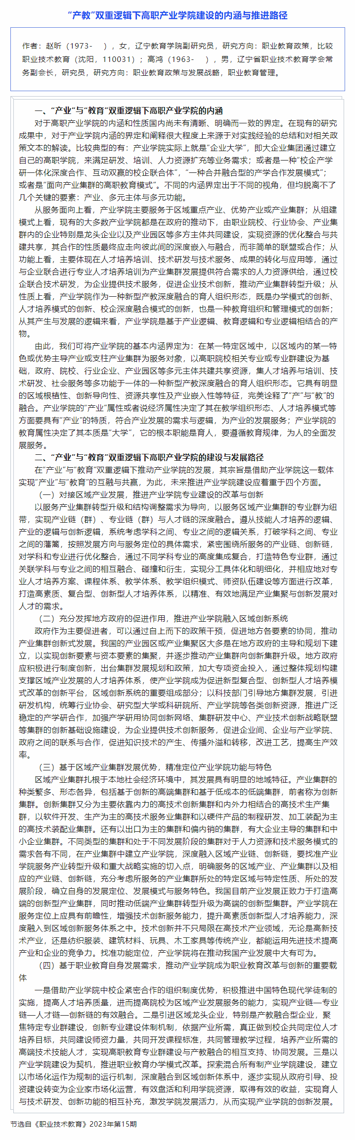 “产教”双重逻辑下高职产业学院建设的内涵与推进路径