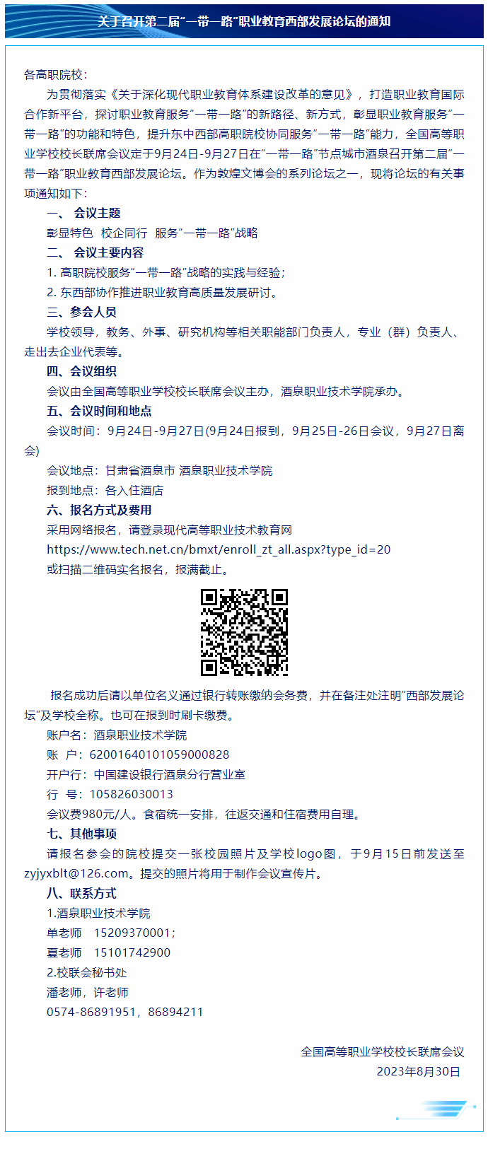 关于召开第二届“一带一路”职业教育西部发展论坛的通知.pdf