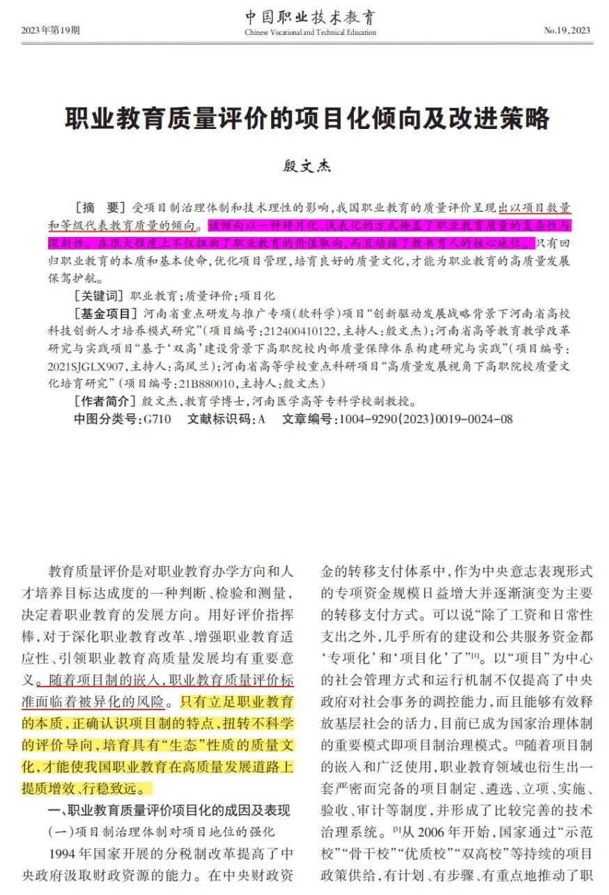 殷文杰:职业教育质量评价的项目化倾向及改进策略