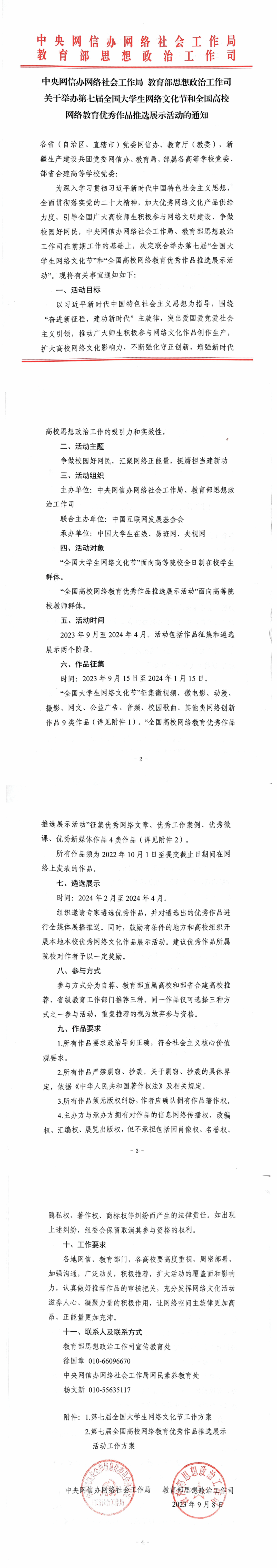 权威发布 | 关于举办第七届全国大学生网络文化节和全国高校网络教育优秀作品推选展示活动的通知