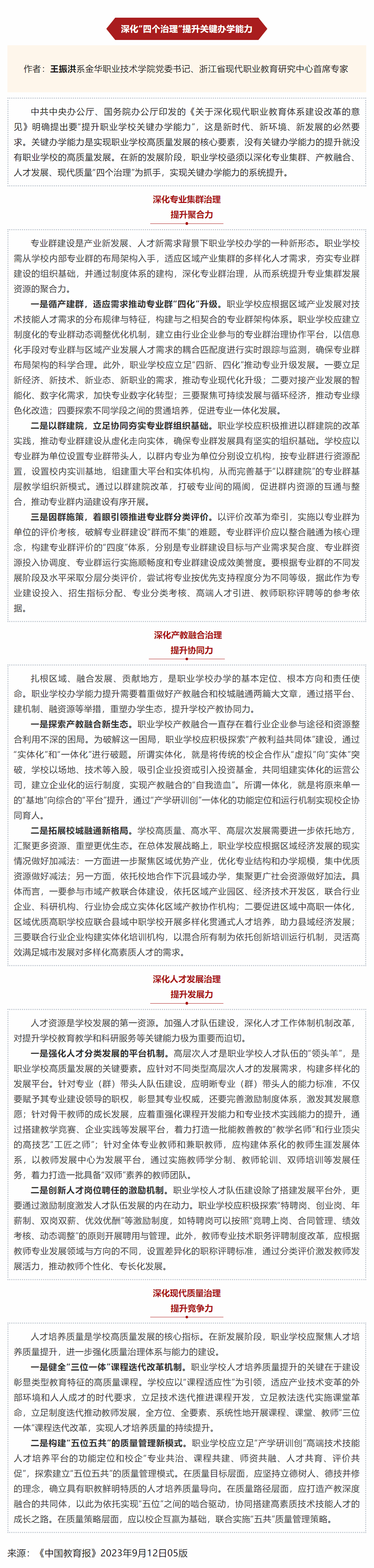 王振洪:深化“四个治理”提升关键办学能力