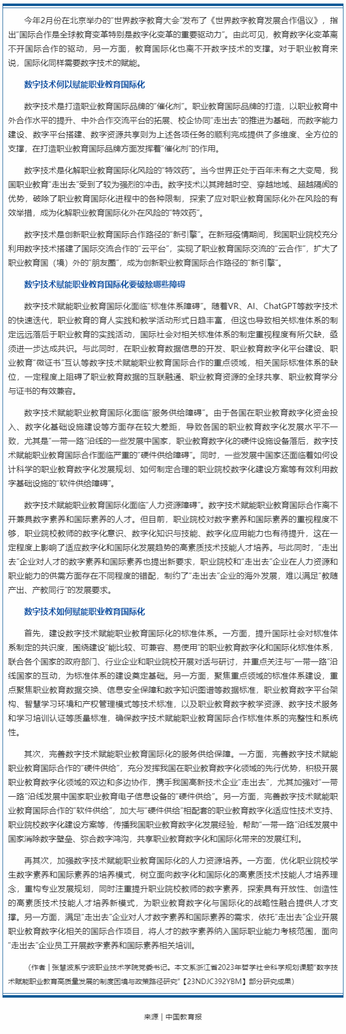 以数字技术赋能职业教育国际化