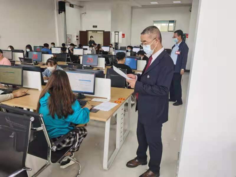 考试期间,内蒙古电子信息职业技术学院党委委员、副校长恩和门德、校企合作与社会服务中心主任庞天天对考点考试工作进行了全程巡视。