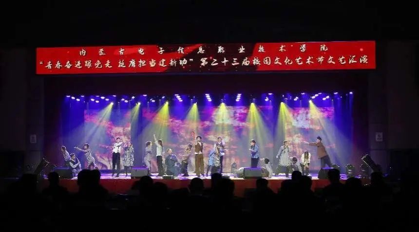 为深入学习贯彻习近平新时代中国特色社会主义思想特别是习近平总书记关于青年工作的重要思想,学校于10月至11月期间在全校范围内举办了主题为“青春奋进跟党走、挺膺担当建新功”第二十三届校园文化艺术节系列活动。经过为期一个月的精心准备,12月4日,我校在文体中心二楼隆重举办了”青春奋进跟党走、挺膺担当建新功”文艺汇演。本次晚会通过线上线下同步直播的方式,吸引在线观看人数高达1.5万人次。
