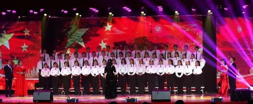 晚会最后,老师们用如火的激情,高唱一首首不朽的赞歌:《没有共产党就没有新中国》《我和我的祖国》。
