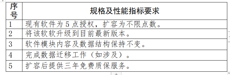 现有软件为5点授权,不能够满足我院教学、实训要求,拟将原系统扩容到不限点数授权;