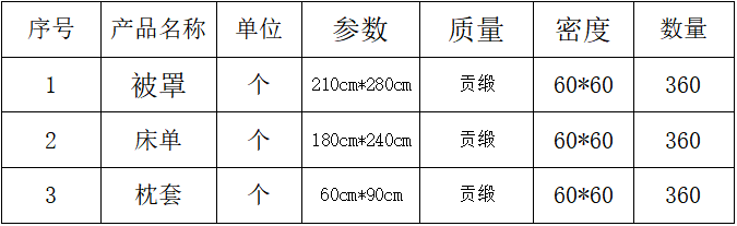一、床上用品采购项目产品清单