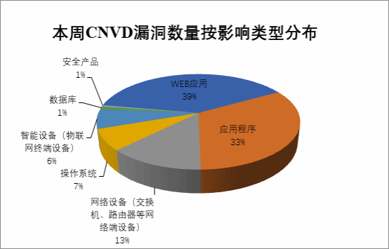 本周,CNVD收录了210个漏洞。WEB应用82个,应用程序69个,网络设备(交换机、路由器等网络端设备)27个,操作系统15个,智能设备(物联网终端设备)14个,数据库2个,安全产品1个。